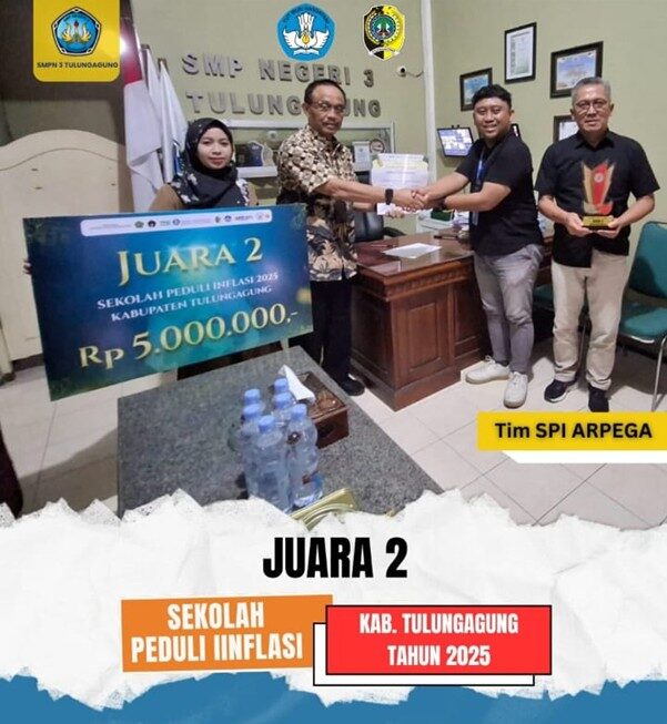 Keluarga besar SMP Negeri 3 Tulungagung kembali menorehkan tinta emas prestasi. Kali ini datang dari bidang lingkungan dan ekonomi kreatif, yaitu Tim SPI ARPEGA (Sekolah Peduli Inflasi ARPEGA) dengan bangga berhasil meraih predikat Juara 2 Lomba Sekolah Peduli Inflasi Tingkat Kabupaten Tulungagung Tahun 2025, sekaligus membawa pulang hadiah pembinaan senilai Rp 5.000.000,-. Lomba Sekolah [...]